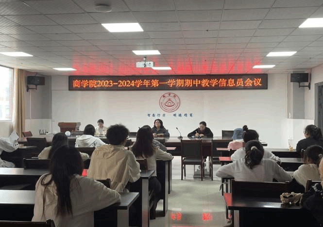 为进一步掌握教学管理动态,确保教学质量监控和信息反馈质量,按照学校《关于开展2023-2024学年第一学期期中本科教学检查的通知》要求,商学院于10月26日中午在实习实训楼B517会议室召开2023-2024学年第一学期期中教学信息员工作会议。会议由教学副院长宁青青主持,教学秘书王红艳、教务员贾晓霞及商学院全体信息员参加了会议。