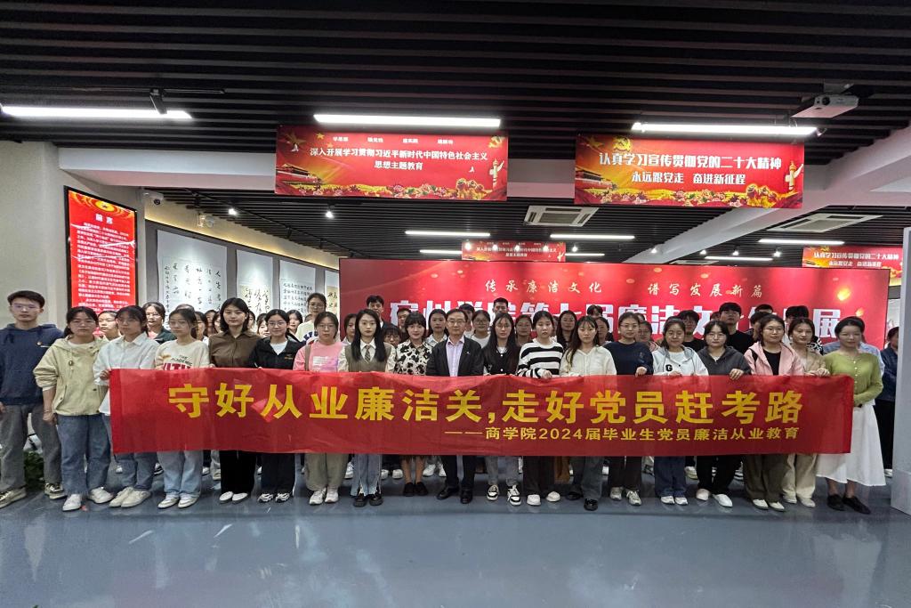 为持续深入学习贯彻习近平新时代中国特色社会主义思想,推动全面从严治党向纵深发展,教育引导毕业生党员在未来的学习、工作岗位上更好地发挥好党员先锋模范作用,10月25日下午,商学院积极开展“守好从业廉洁关,走好党员赶考路”2024届毕业生党员廉洁从业教育主题活动。