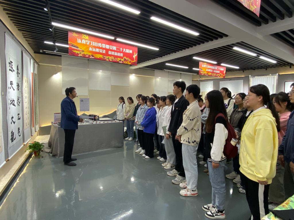 随后,全体毕业生党员集体前往美术与设计学院展厅参观“传承廉洁文化 谱写发展新篇”宿州学院第七届廉洁文化作品展。在廉洁作品前,党委委员、组织员黄凯讲授了“唯廉洁,方致远”主题微党课。他指出,毕业生党员要坚决树立正确的金钱观、财富观、权力观,做到正直公道、谦让奉献、遵纪守法;要时刻强化党员意识、先锋意识、模范意识,堂堂正正做人、干干净净做事,勤勤恳恳工作、清清白白做官;要不断强化“我是宿州学院人”的母校意识、学子情怀,以实际行动展现新时代学生党员的政治水平、能力水平、廉洁水平。