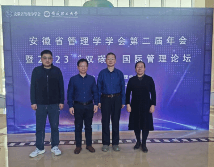 11月17-18日,安徽省管理学学会第二届年会暨2023“双碳”国际管理论坛在安徽理工大学隆重召开。本次年会由安徽省管理学学会主办,安徽理工大学经济与管理学院承办。安徽省社科联党组成员、副主席江涛,淮南师范学院党委副书记、院长程刚,安徽理工大学副书记、常务副校长、国家级领军人才获得者余玉刚,安徽省管理学学会理事长梁昌勇,国务院学科评议组成员、哈尔滨工业大学张紫琼,江南大学二级教授龙如银,合肥工业大学蒋翠清,国家社科基金重大项目首席专家,国家优秀青年科学基金获得者邵帅,国家优秀青年科学基金获得者刘林冬及来自安徽省管理学相关高校、科研机构的专家学者、研究生代表300余人参加了本次大会。商学院张英彦教授、院长刘红军、科研副院长周书灵、科研秘书陈同峰应邀出席了此次盛会。