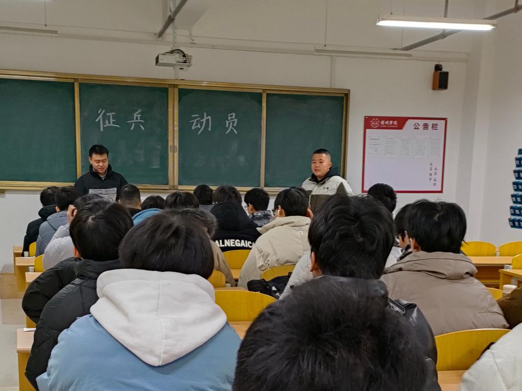 为加强国防教育宣传,激发学生积极参军、保家卫国的热情,12月18日上午,商学院在实训楼B206教室举行征兵动员暨国防教育宣讲会,此次会议由商学院学生事务管理科副科长孙茂顺老师主持,各年级有参军意向的学生代表参加了会议。