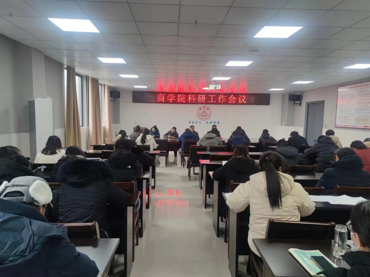 其次,对2024年商学院科研工作进行了部署,强调重点做好重点学科建设、硕士点申报、科研平台建设、校地校企产学研合作等工作,对2024年国家社科、自科基金项目申报,教育部人文社科、安徽省社科规划项目等省部级项目申报工作进行了安排部署。