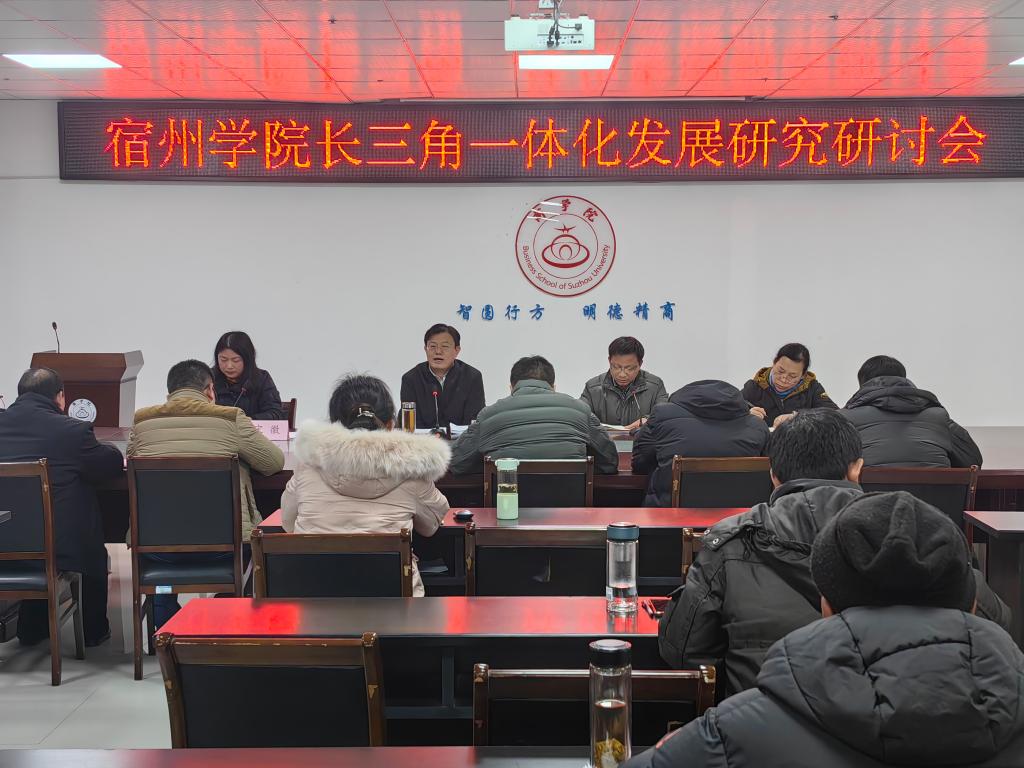 为进一步贯彻落实习近平总书记在深入推进长三角一体化发展座谈会上的重要讲话精神和安徽省委常委会赴宿州市现场办公会议精神,不断提升我院长三角一体化发展研究能力,1月12日下午,我院在实训楼B517会议室召开“宿州学院长三角一体化发展研究研讨会”。院党委书记李红出席会议并作指导讲话,商学院科研副院长周书灵、管理学院副院长宋徽及宿州学院长三角一体化研究中心全体成员参加会议,会议由商学院党委副书记、院长刘红军主持。