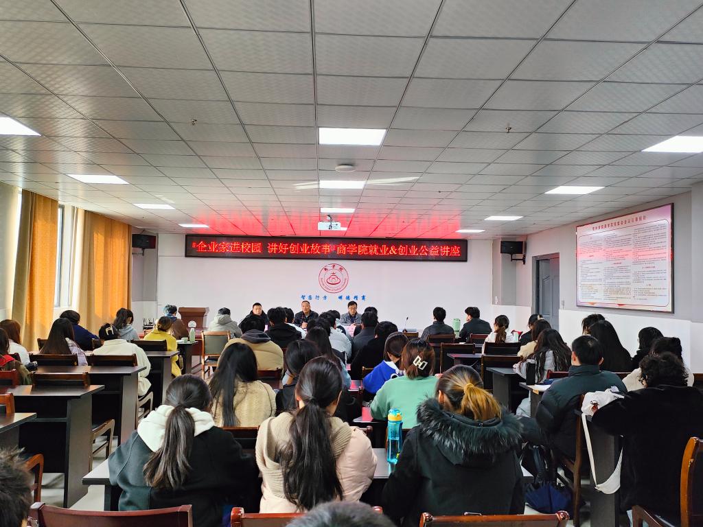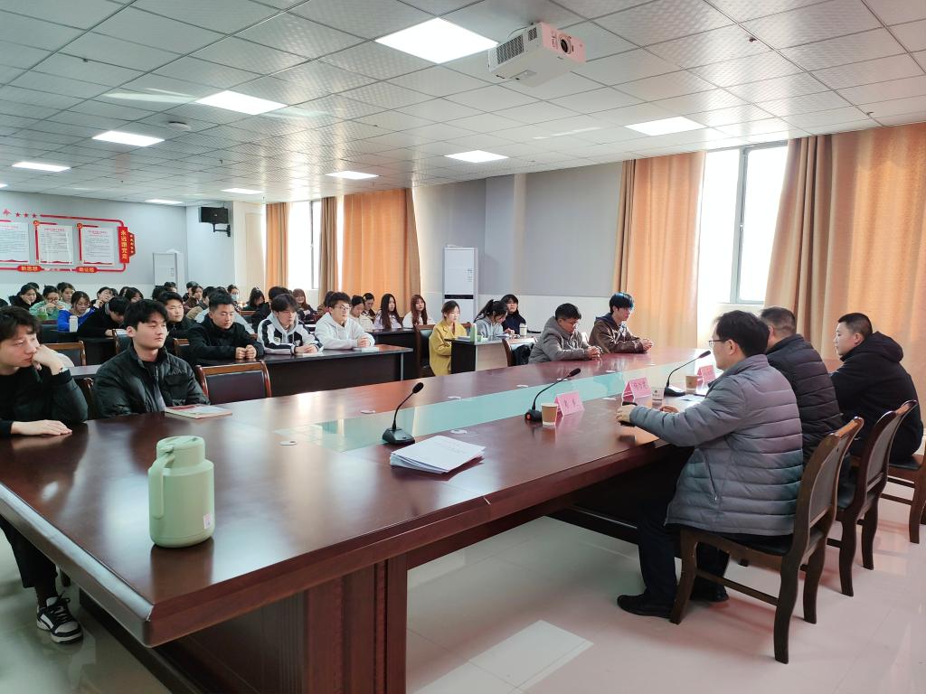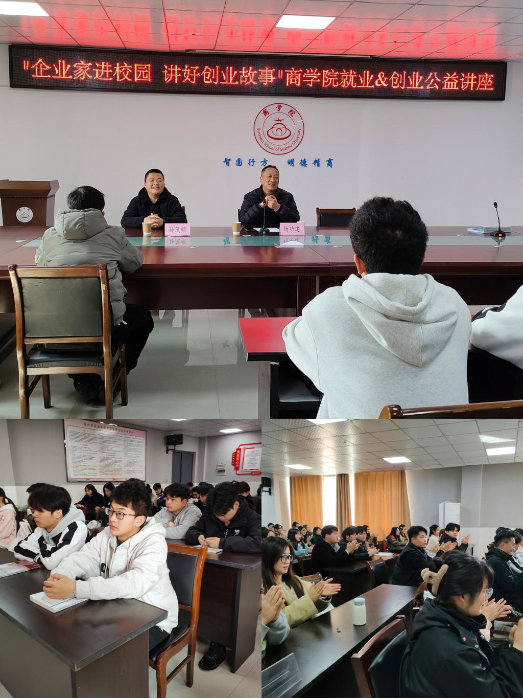 为深入探索校企协同、合作育人的人才培养模式,帮助学生树立正确的就业创业观,3月14日上午,商学院在实训楼B517会议室举办就业创业公益讲座。安徽建功风光新能源科技有限公司总经理杨功建作主讲嘉宾,商学院党委书记肖良、学生事务管理科副科长孙茂顺和21级财务管理专业60余名学生参加了讲座。