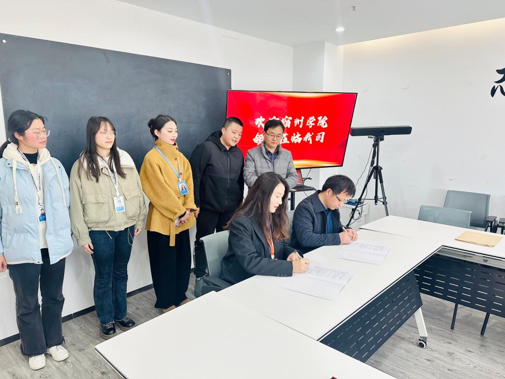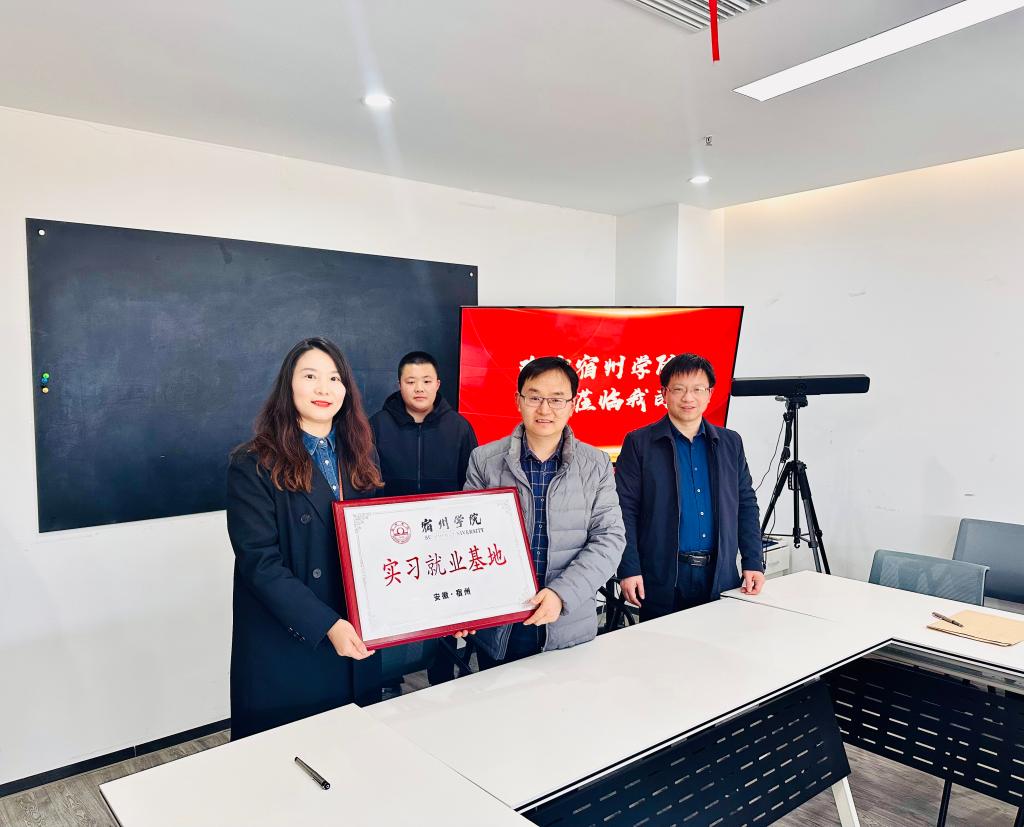 为进一步加强校企合作,拓展实习就业岗位。3月14日下午,商学院与安徽微必应信息科技有限公司实习就业基地签约授牌仪式在宿州市高新区阿尔法产业园举行。商学院党务书记肖良,党委副书记、院长刘红军,学生事务管理科副科长孙茂顺,辅导员王倩钰,安徽微必应信息科技有限公司人力资源部主管王露露,人事专员张梦雅和商学院实习学生代表出席仪式。