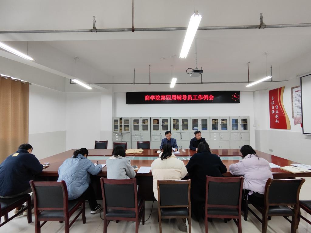 3月18日上午,商学院在实训楼B507会议室召开春季学期第四周辅导员工作例会。商学院党委书记肖良,党委副书记、院长刘红军和全体辅导员参加了会议。