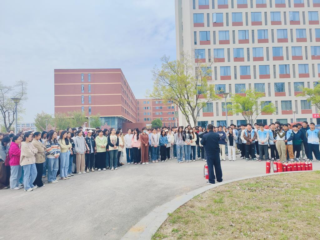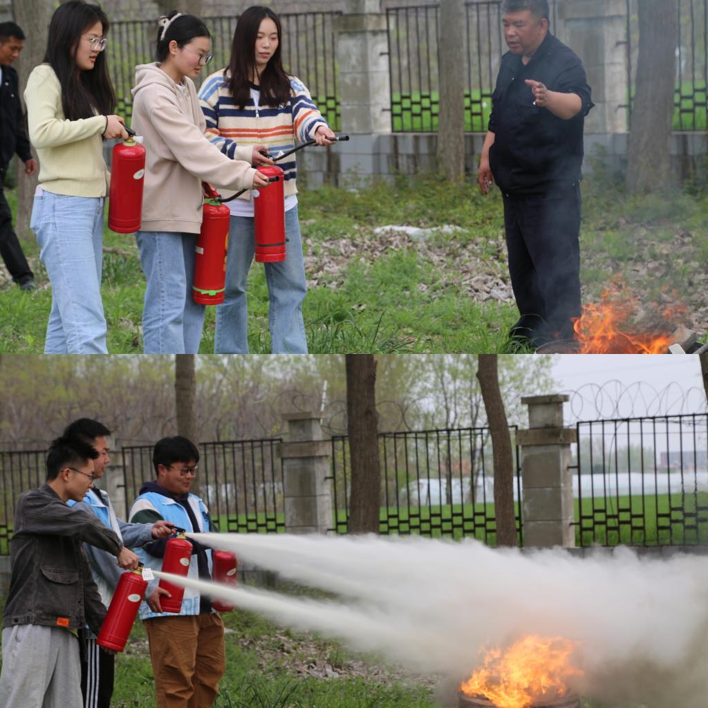 随着警报声响起,教学楼内的学生在消防志愿者的引导下,快速疏散到安全地带,整个疏散过程学生冷静、镇定、不慌乱,工作人员和志愿者指挥引导规范有序。疏散结束后,保卫处工作人员就火场应急处置流程以及干粉灭火器使用和操作进行了现场培训,参演学生代表实际操作灭火器,对模拟起火点进行了灭火扑救操作。