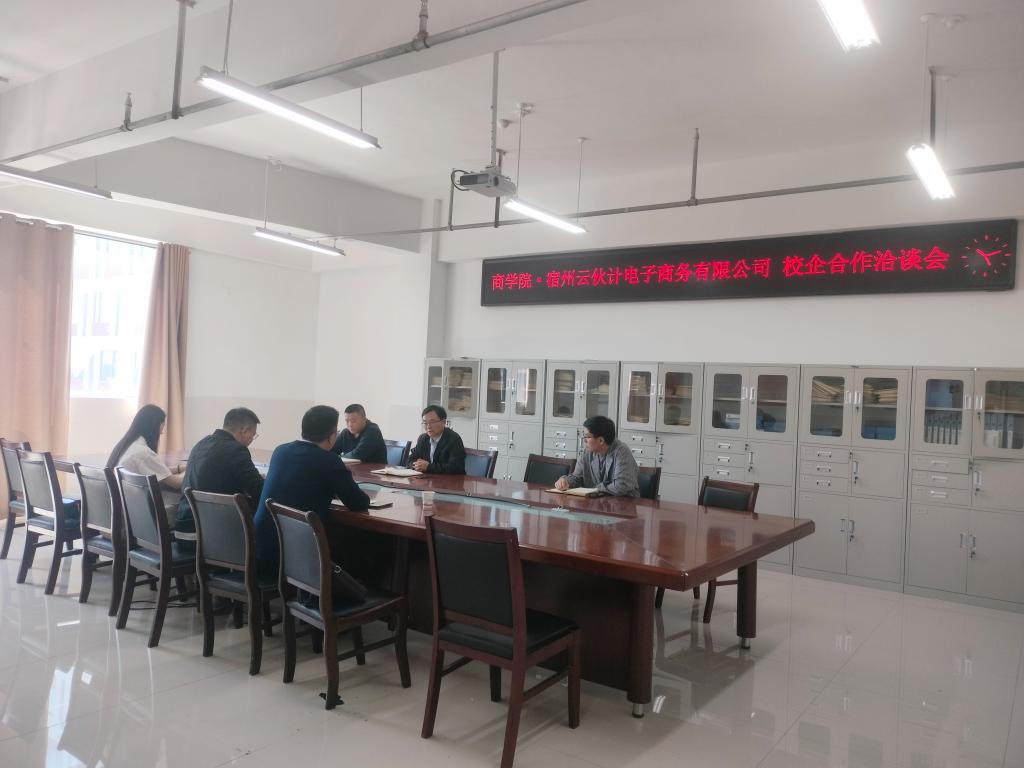 5月8日上午,宿州云伙计电子商务有限公司总经理薛文一行来商学院推动校企合作交流,商学院党委书记肖良,学生事务管理科副科长孙茂顺,毕业班辅导员王晓波参加了座谈,双方就今后的合作进行了深入交流探讨。