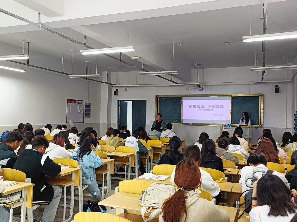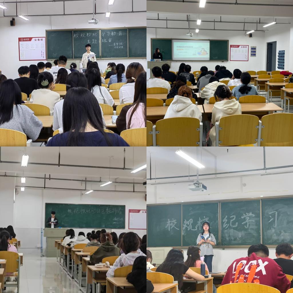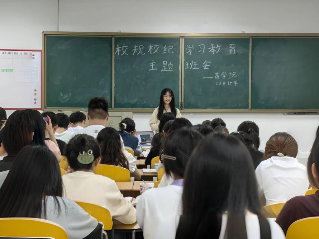 为提升学生对校规校纪的认识和遵守程度,创建良好的校风学风,4月25日至5月8日,商学院组织开展了校规校纪学习教育活动主题班会活动。商学院各班辅导员以及各专业学生参加了班会。