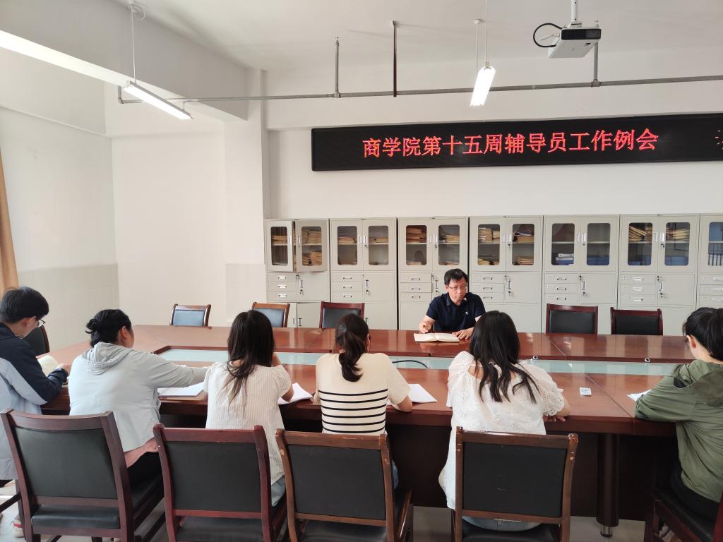 6月3日上午,商学院在实训楼B507会议室召开春季学期第十五周辅导员工作例会。商学院党委副书记、院长刘红军和全体辅导员参加了会议。