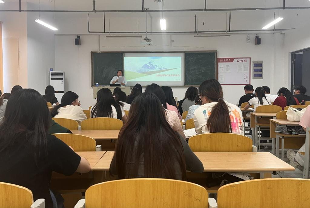 为进一步加强我院学风考风建设,以考风正学风、以学风促考风,对标党纪学习教育目标要求,6月19日至26日,商学院各班分别召开“正考风,严纪律”考前诚信教育主题班会。
