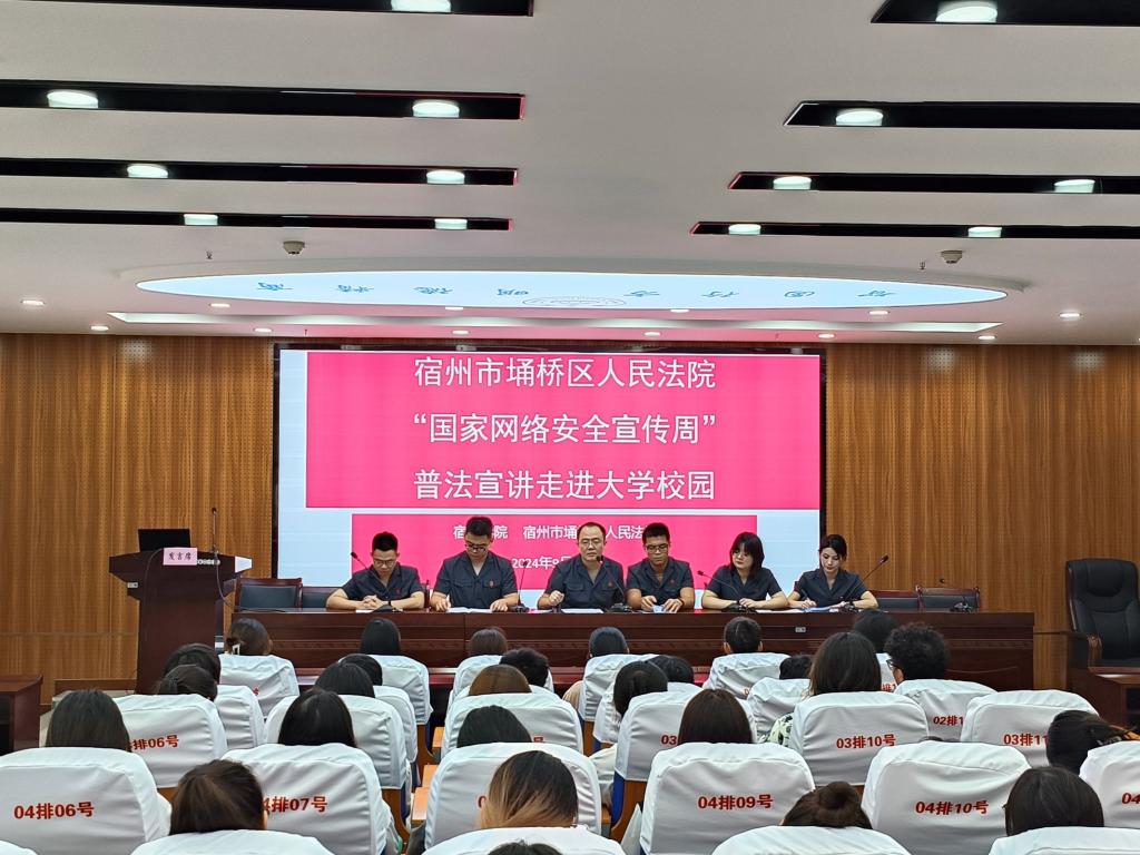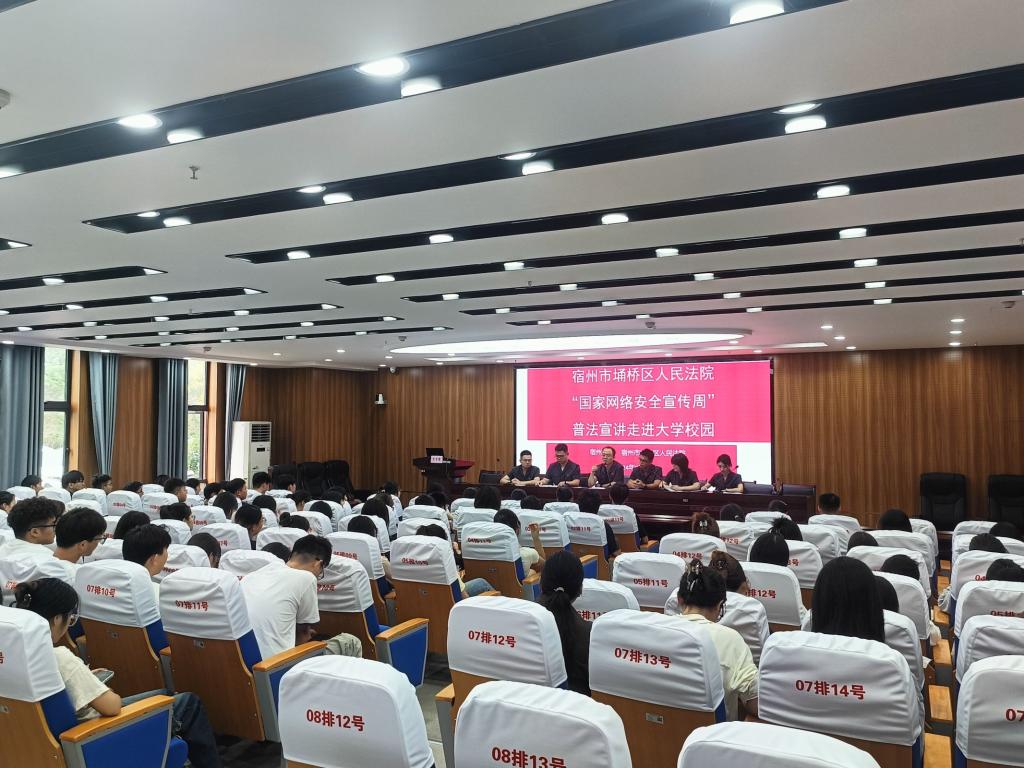 埇桥区人民法院工作人员讲述了法律的重要性及意义,并通过近年来的案例深入浅出地为大家阐述了盗窃罪、诈骗罪、危险驾驶罪、国家级考试作弊行为、故意伤害罪、聚众斗殴、寻讯滋事、非法拘禁、毒品犯罪等犯罪行为的司法解释及严重后果,为学生科普宣传了一些基本法律知识。讲座结束后的互动环节,同学们咨询了法律相关问题,工作人员为同学们作出解答,帮助大家进一步了解法律知识。