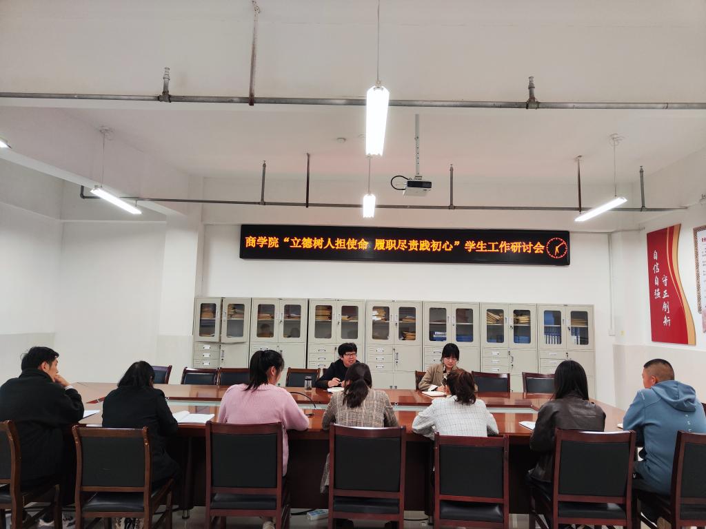 为进一步做好秋季学期学生管理工作,提升管理水平和工作效率,10月28日下午,商学院召开“立德树人担使命 履职尽责践初心”学生工作研讨会。院党委书记王淑霞主持会议,党委副书记张锐锐、分团委副书记曹超超、学生事务科副科长孙茂顺以及全体专职辅导员参加会议。