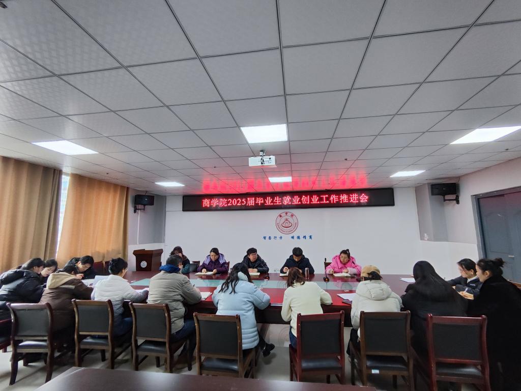 2月17日上午,商学院在实训楼B517会议室召开2025届毕业生就业创业工作推进会,院党委书记王淑霞主持会议,党委副书记、院长刘红军,副院长宁青青,副院长张冰秋,党委副书记张锐锐,科级干部以及全体专职辅导员参加了会议。