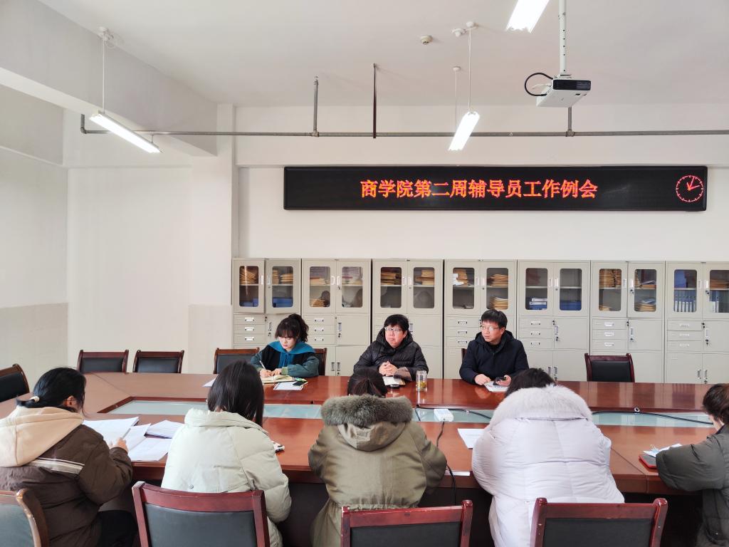 2月25日上午,商学院在实训楼B507会议室召开2024-2025学年春季学期。商学院党委书记王淑霞,党委副书记、院长刘红军和全体辅导员参加了会议,党委副书记张锐锐主持会议。