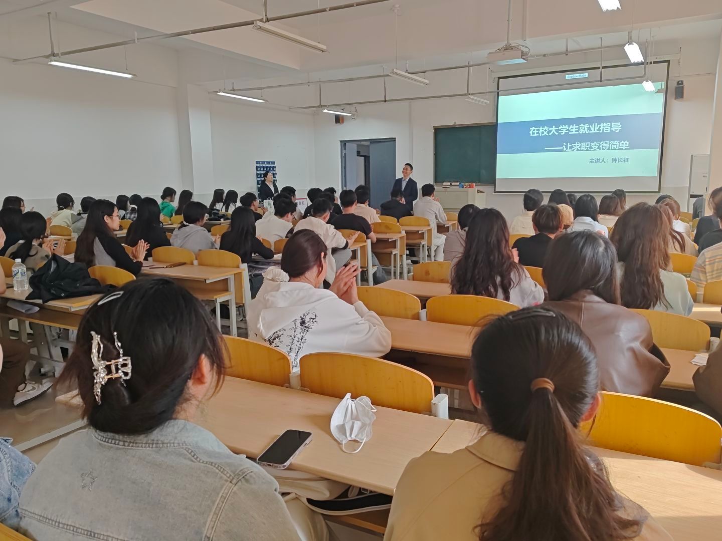 为进一步引导大学生增强就业意识,树立正确的就业观,4月9日下午,商学院在实训楼B308教室举办就业指导讲座暨周三就业集市专场宣讲活动。安徽碧桂园生活服务集团股份有限公司人力资源总经理钟长征作为主讲嘉宾,学生事务管理科副科长孙茂顺和70余名2025届毕业生代表参加了活动。