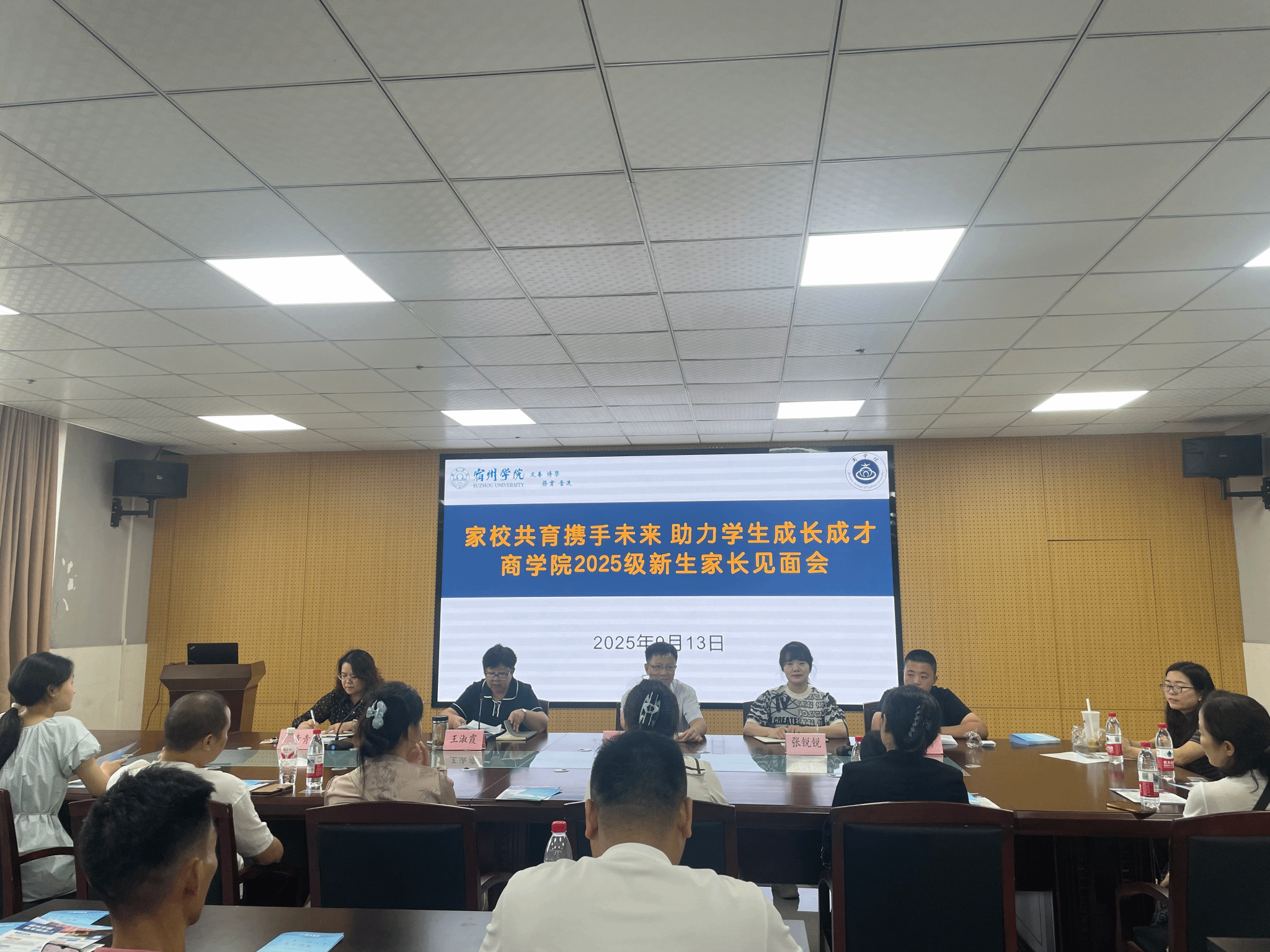 9月13日下午,商学院在实训楼B517会议室召开2025级新生家长见面会。本次见面会以“家校共育携手未来 助力学生成长成才”为主题,吸引了百余名新生家长参加。院党委书记王淑霞、党委副书记、院长刘红军、副院长宁青青、党委副书记、纪委书记张锐锐、学生事务管理科科长孙茂顺以及新生家长代表参加了此次会议。会议由王淑霞主持。