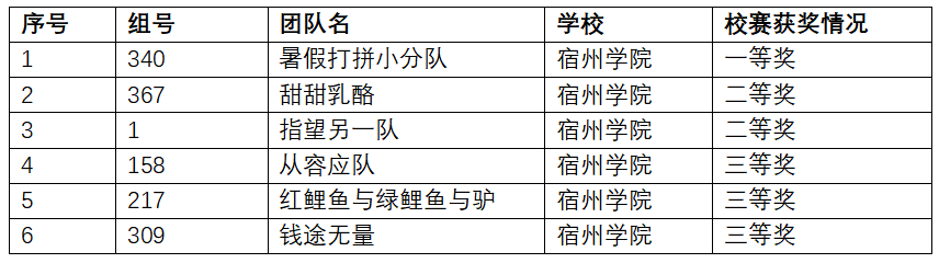 表1:2022年安徽省国际贸易综合技能大赛宿州学院校园选拔赛成绩