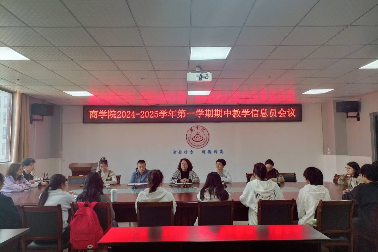 为进一步掌握教学管理动态,确保教学质量监控和信息反馈质量,按照学校《关于开展2024-2025学年第一学期期中本科教学检查的通知》要求,商学院于11月1日中午在实习实训楼B517会议室召开2024-2025学年第一学期期中教学信息员工作会议。会议由教学副院长宁青青主持,教学督导徐旭、学生科科长孙茂顺、教学秘书王红艳、教务员贾晓霞及商学院全体信息员参加了会议。