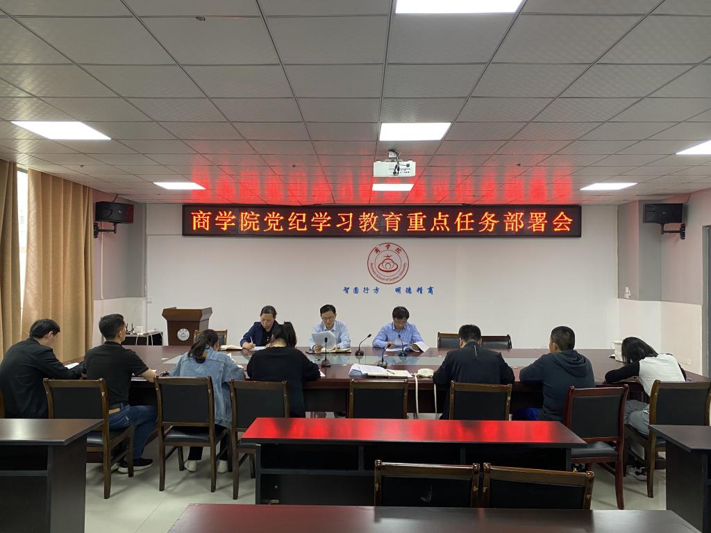 4月25日下午,商学院在实训楼B517会议室召开党纪学习教育重点任务部署会。会议由党委书记肖良主持,学院领导班子成员、科级干部、各党支部书记参加了会议。