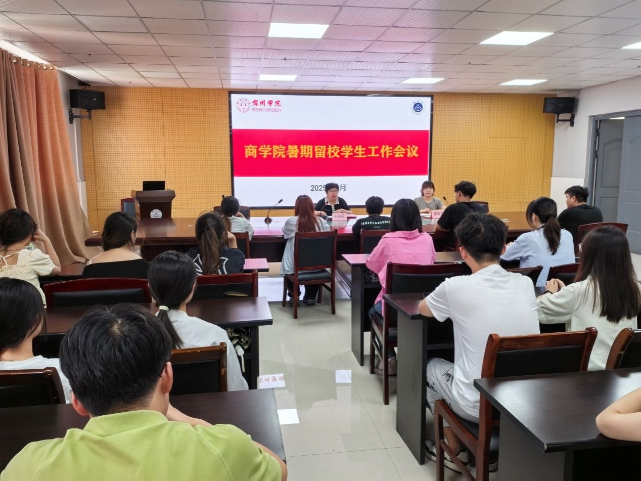 为切实做好暑假留校学生的管理工作,确保留校学生度过一个安全、有序的假期,6月27日下午,商学院召开暑假留校学生工作会议。商学院党委书记王淑霞,党委副书记、纪委书记张锐锐,全体辅导员以及暑期留校学生参加了会议。